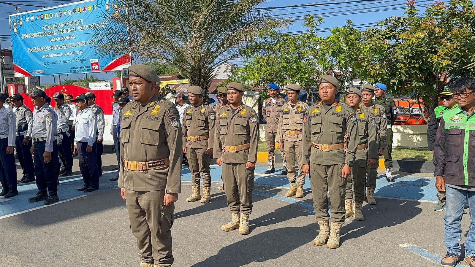 Satpol PP dan WH Kota Lhokseumawe Mengikuti Apel Gelar Pasukan Operasi Ketupat 2026 di Polres Lhokseumawe