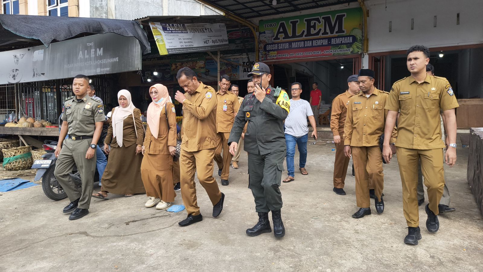 Satpol PP & WH Kota Lhokseumawe Laksanakan Pengawalan Sidak Wakil Wali Kota di Pasar Inpres dan Suzuya